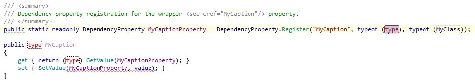 Hitting tab shifts me to the next macro, which is the type for the dependency property: